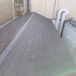 屋根に上って現状を確認した所、大きく破損したり強風などにより屋根が傷んだと言うこともなく、とても綺麗な状態の屋根でしたので、まだまだ耐用年数が残っているので、部分修理でも十分に屋根を守ることが出来ますよとお話させて頂きました。であるならば、修理をしてしばらく現状で住みたいとのことでしたので、雨漏りを止める広報をさせていただきました。